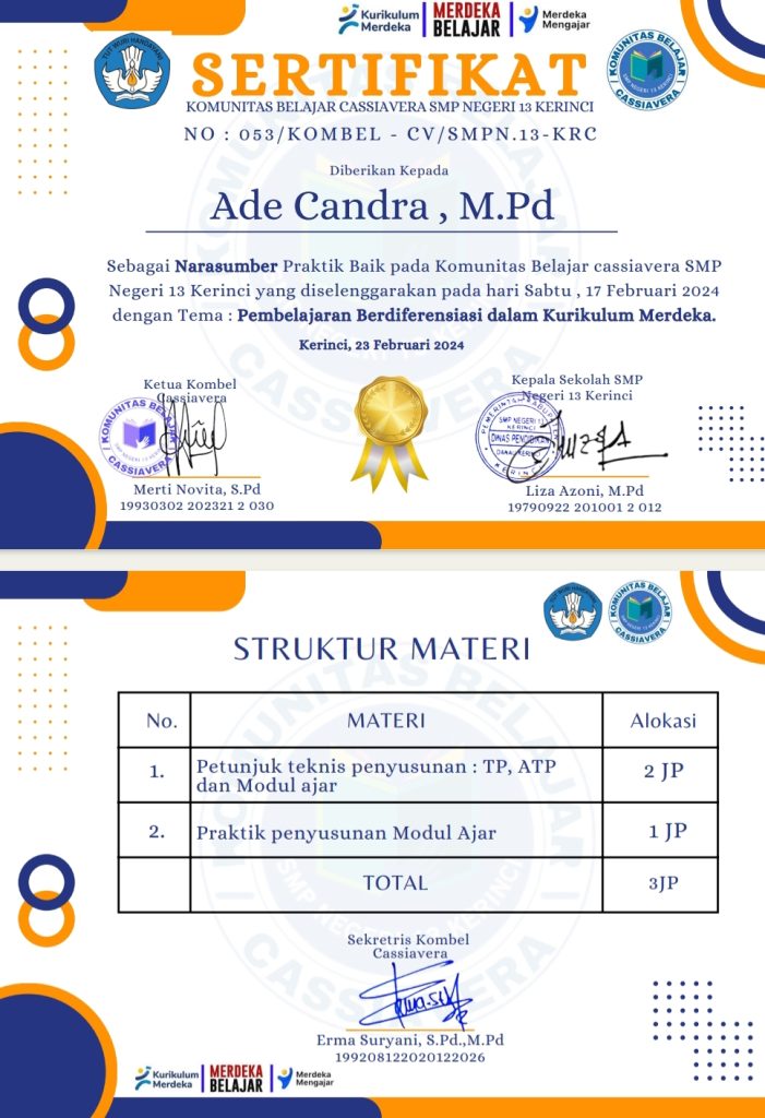 Narasumber Berbagi Praktik Baik SMPN 13 Kerinci